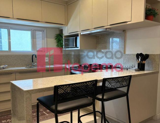 03 Suítes 02 Vagas de garagem Mobiliado Área de serviço Living de estar e jantar Cozinha Lavabo Ampla sacada Sacada com churrasqueira a Carvão Piso porcelanato Acabamento em gesso Tubulação para ar-condicionado tipo Split Medidores de água, luz e gás individuais Portas e rodapés em laca branca Tubulação para água quente Áreas comuns equipadas e decoradas Sol da tarde
