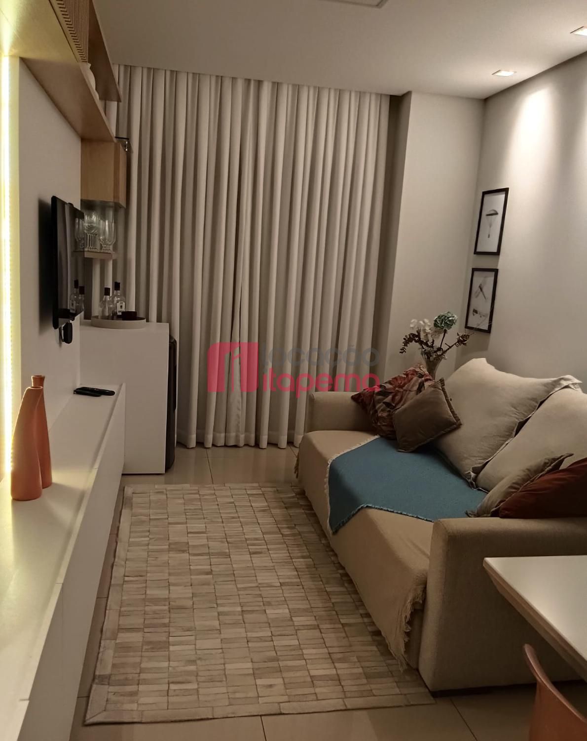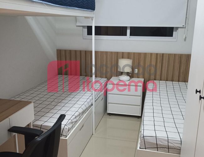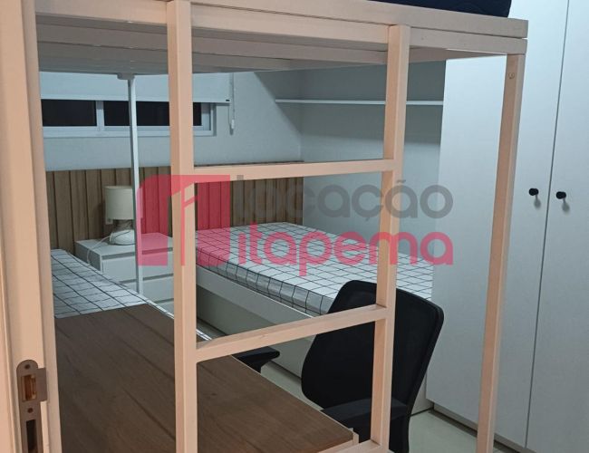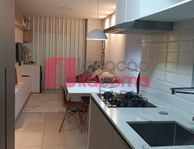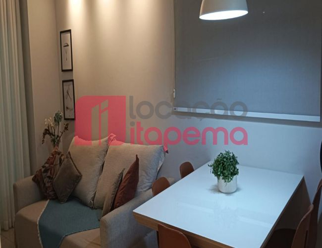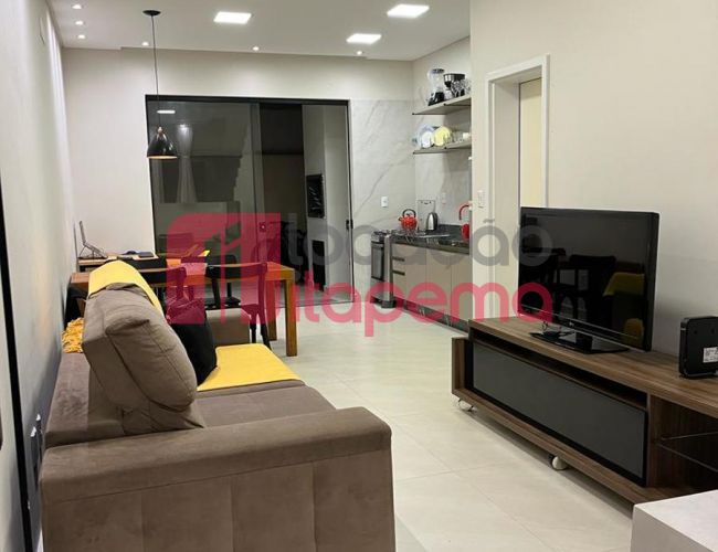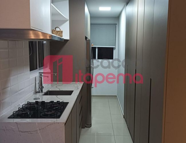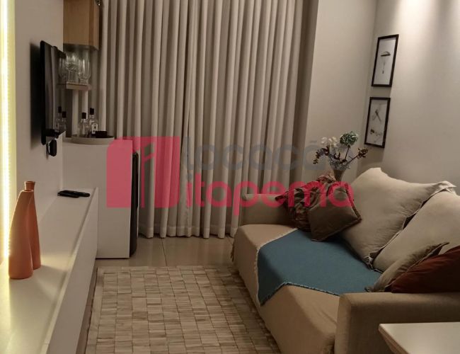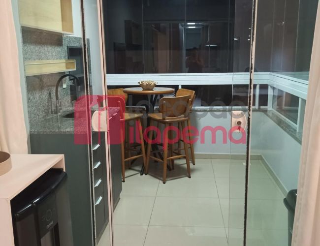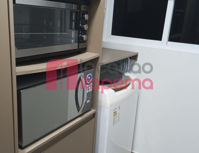 02 Dormitórios sendo 01 Suíte 01 vaga de garagem Mobiliado Área de serviço Living Living integrado Living de estar e jantar Cozinha Banheiro Ampla sacada Sacada com churrasqueira a Carvão Piso porcelanato Acabamento em gesso Tubulação para ar-condicionado tipo Split Medidores de água, luz e gás individuais Infra estrutura de cabeamento de antena local de TV/cabo e parabolica instalada Portas e rodapés em laca branca Tubulação para água quente Áreas comuns equipadas e decoradas Sol da tarde