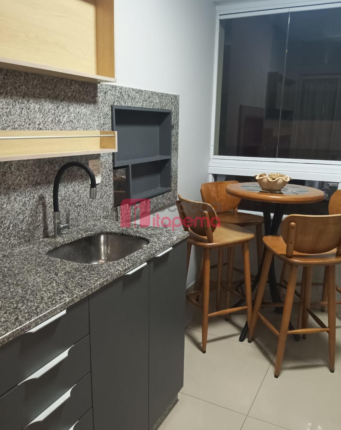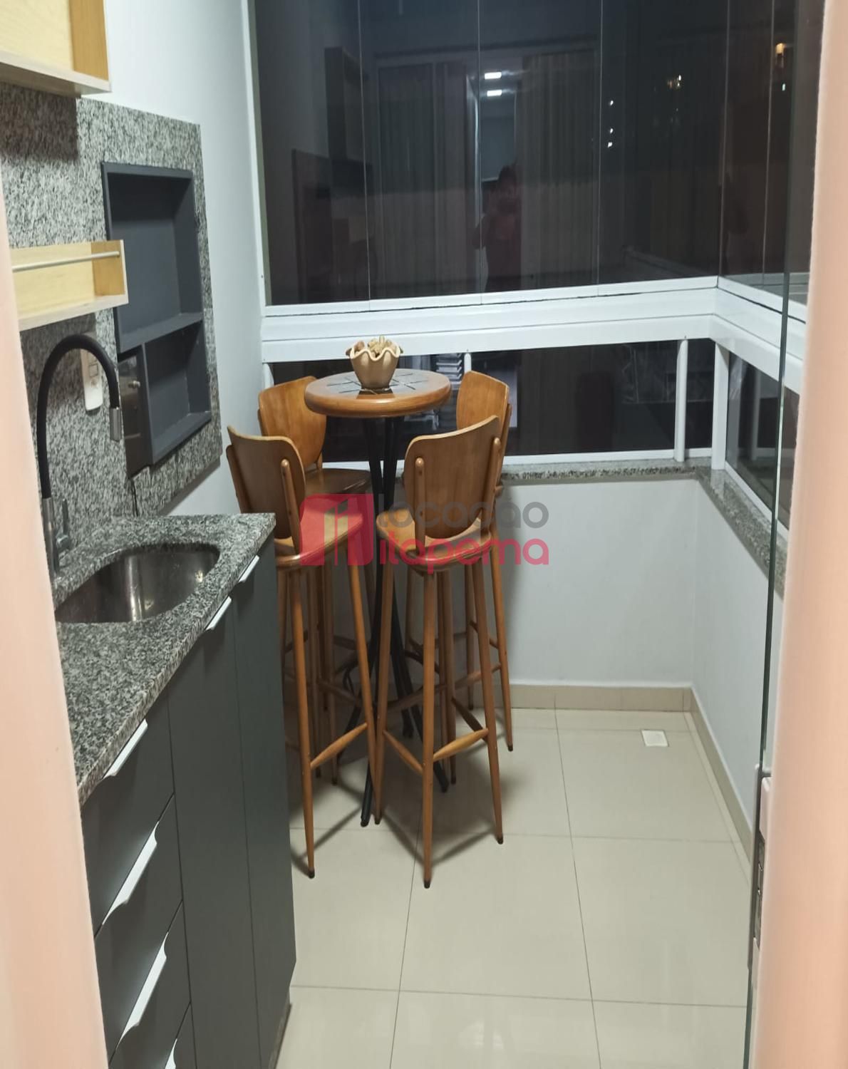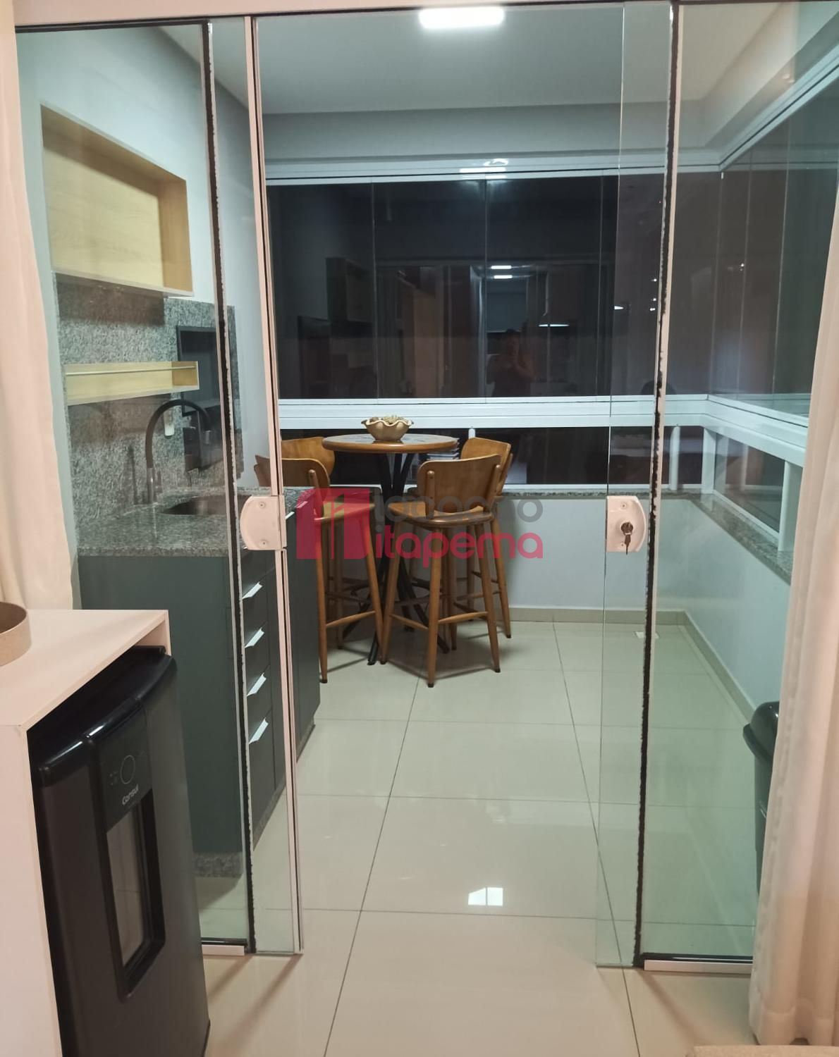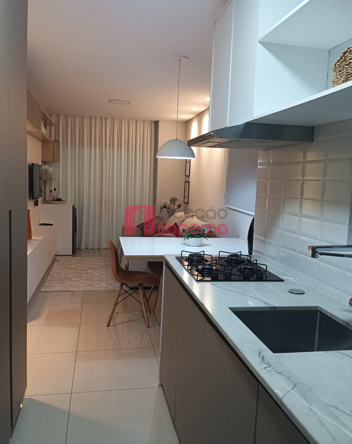 02 Dormitórios sendo 01 Suíte 01 vaga de garagem Mobiliado Área de serviço Living Living integrado Living de estar e jantar Cozinha Banheiro Ampla sacada Sacada com churrasqueira a Carvão Piso porcelanato Acabamento em gesso Tubulação para ar-condicionado tipo Split Medidores de água, luz e gás individuais Infra estrutura de cabeamento de antena local de TV/cabo e parabolica instalada Portas e rodapés em laca branca Tubulação para água quente Áreas comuns equipadas e decoradas Sol da tarde